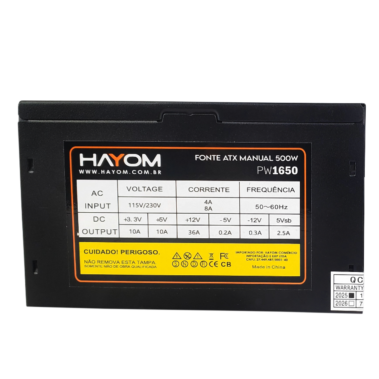 Fonte Atx Real 500wr Hayom Pw1650 C/ Cabo Cod: 5296