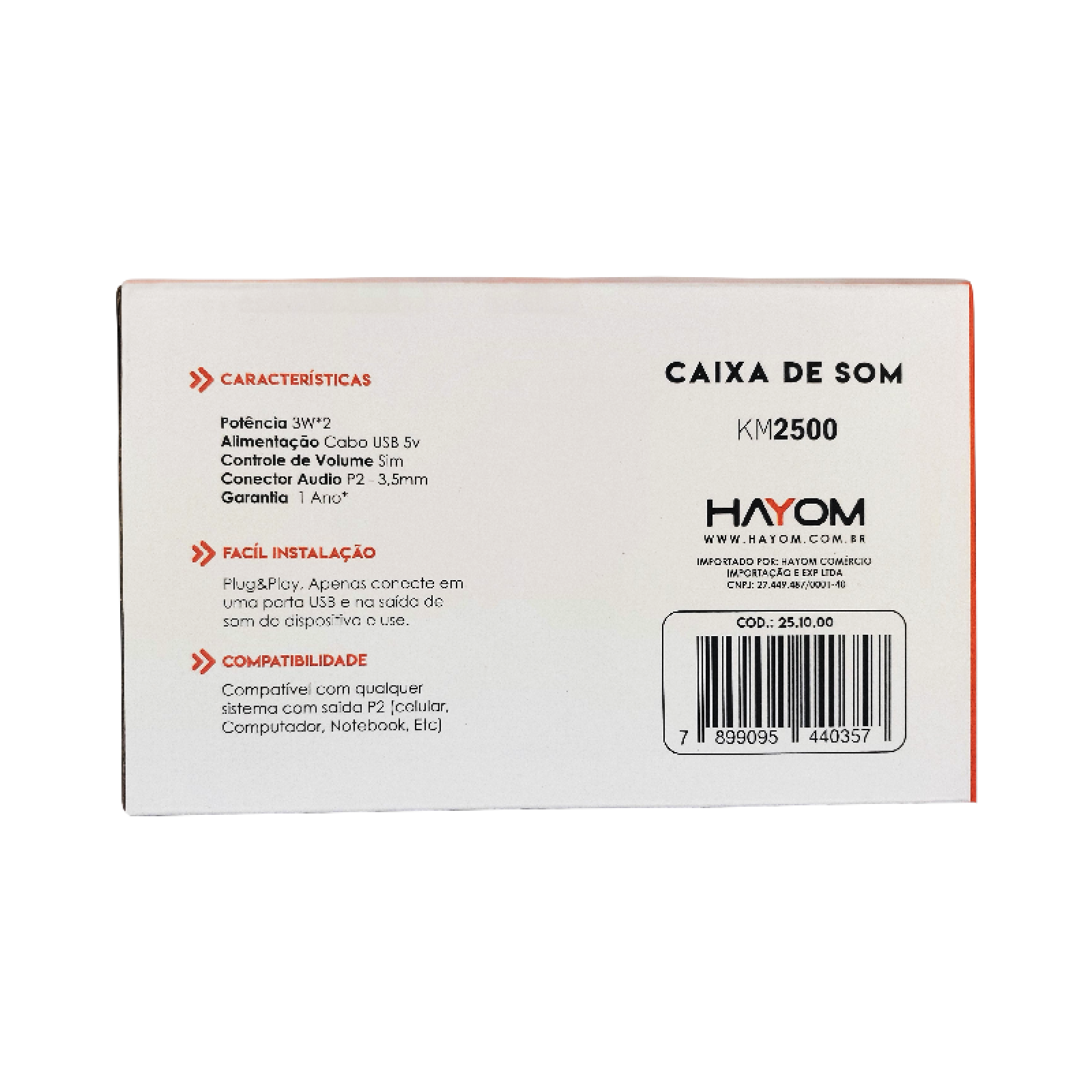Caixa de Som 2.0 Hayom Km2500 Cod: 5165