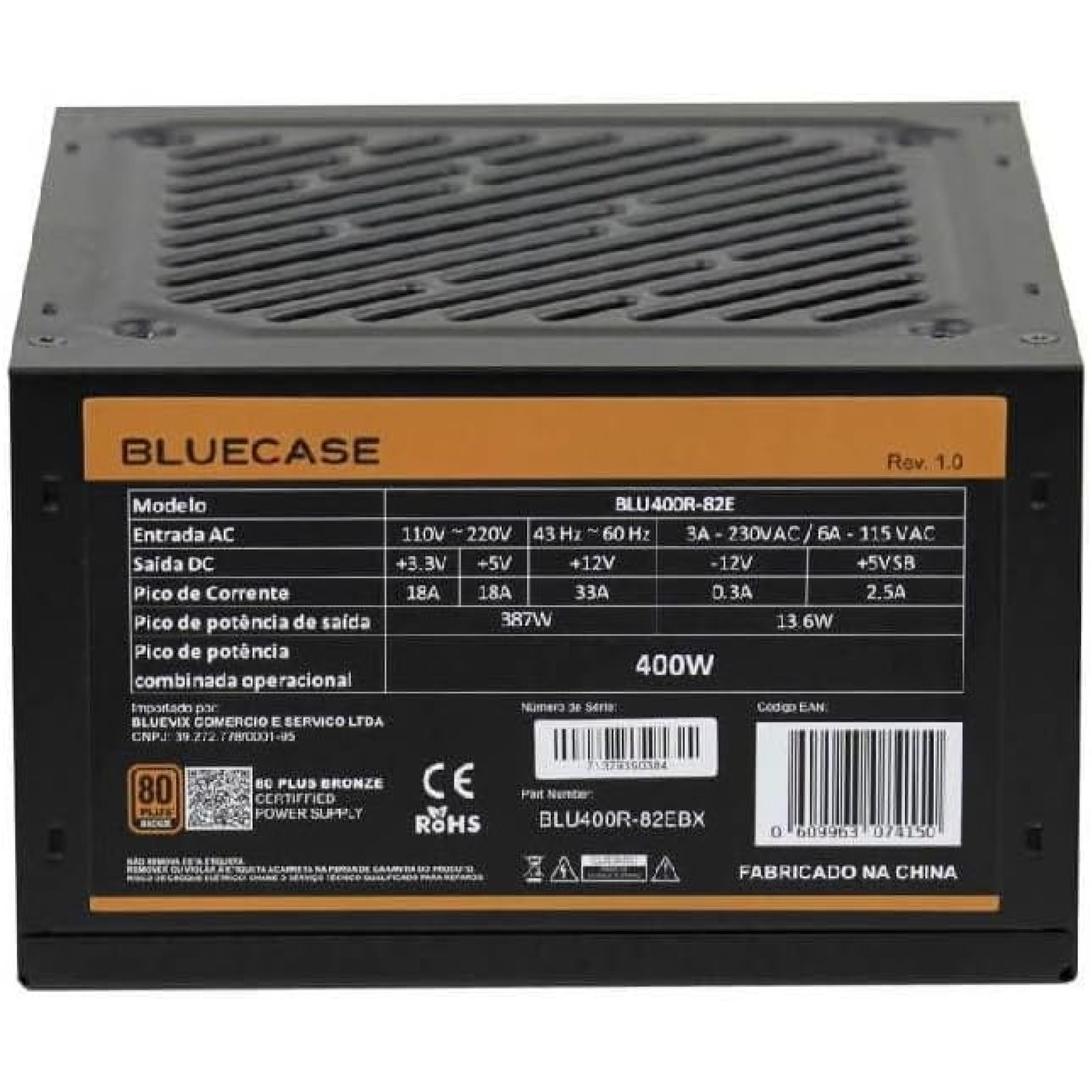 Fonte Atx 80 Plus Bronze 600wr Bluecase Blu600-es-rgb650w ( Pfc Ativo/ Bivolt Auto)- Cod: 5456