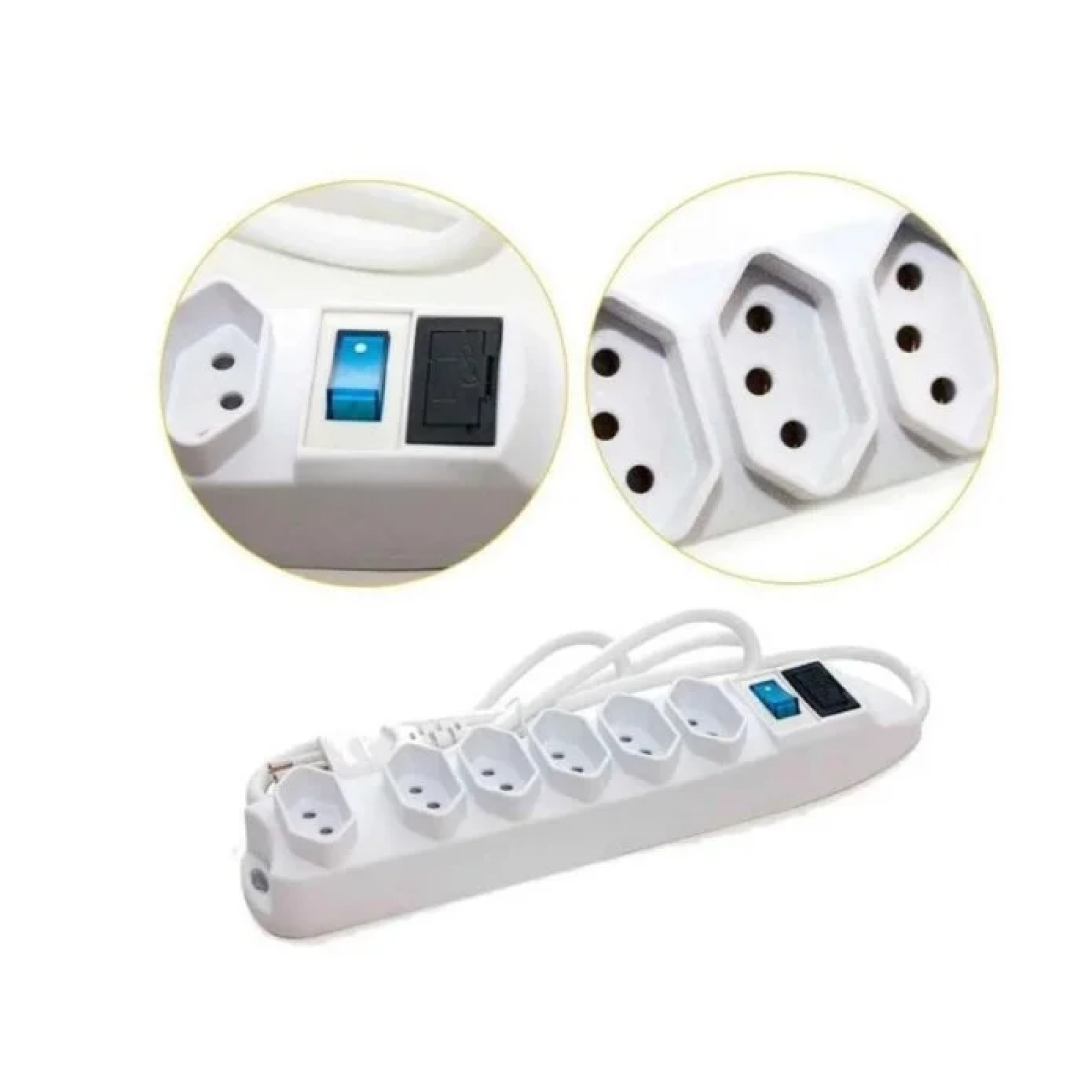 Protetor Elet. 6 Tomadas 10amp 5mts Branco - Cod: 5061